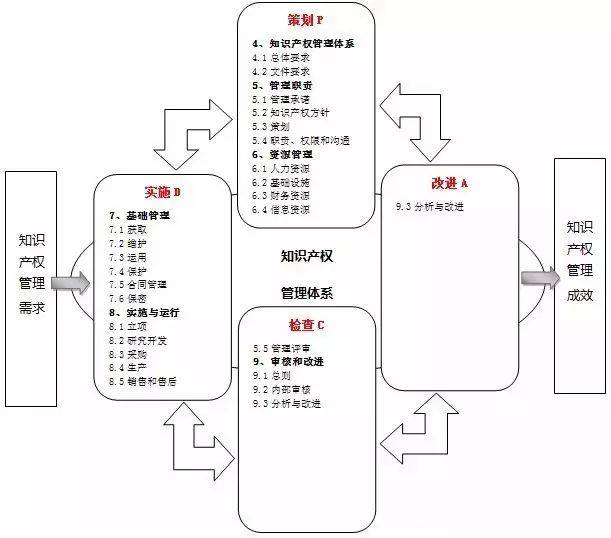 知識產(chǎn)權貫標,就是貫徹《企業(yè)知識產(chǎn)權管理規(guī)范》國家標準?!镀髽I(yè)知識產(chǎn)權管理規(guī)范》是由國家知識產(chǎn)權局和中國標準化研究院共同起草制訂,經(jīng)由國家質(zhì)量監(jiān)督檢驗檢疫總局和國家標準化管理委員會聯(lián)合批準頒布的國內(nèi)首個企業(yè)知識產(chǎn)權管理國家標準,該標準于2013年3月1日起實施,標準號是GB/T29490-2013。該標準,與其他質(zhì)量管理體系一樣,采用了PDCA(策劃、實施、檢查、改進)方式作為管理體系的基本過程方法。